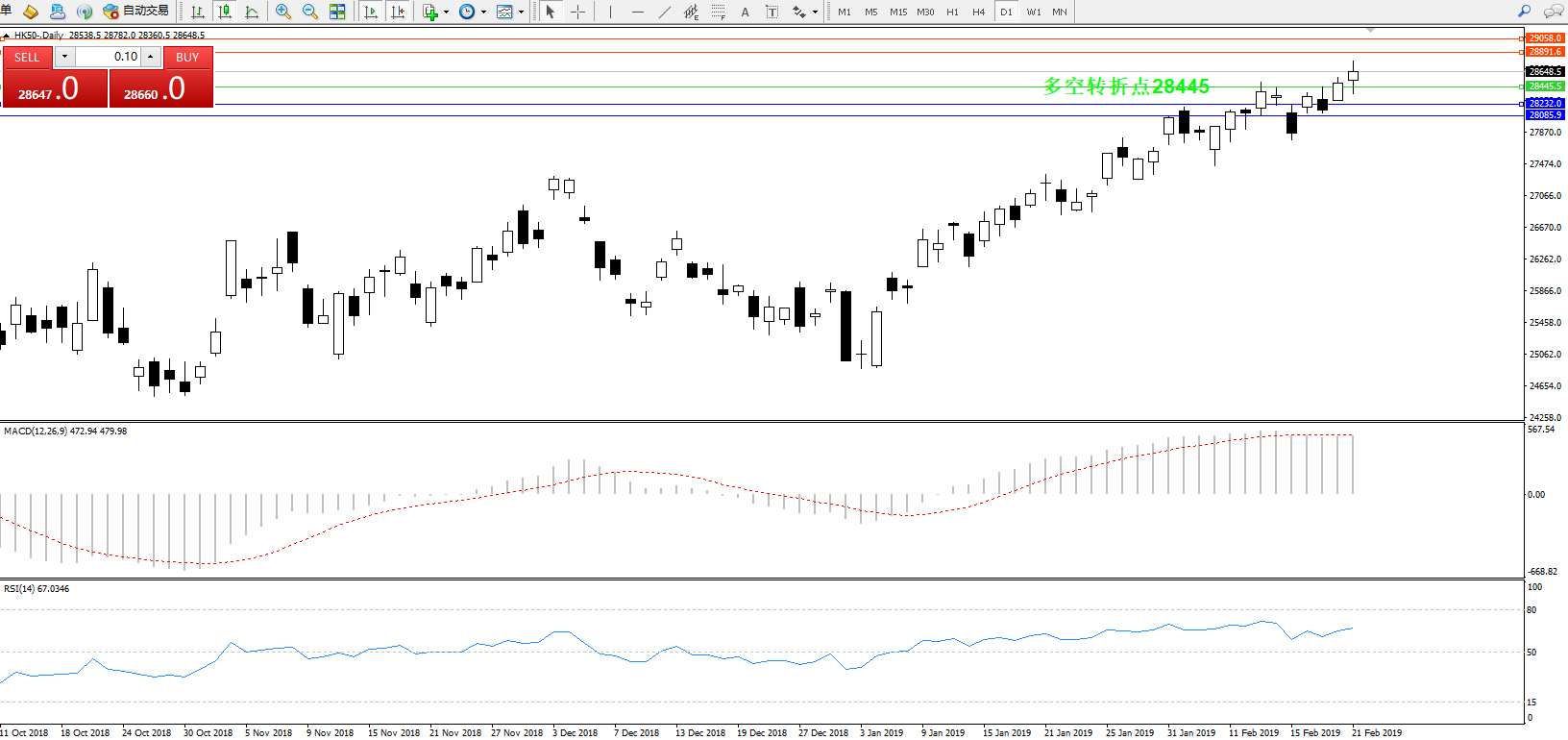 恒指HK50 ——日K线图显示: