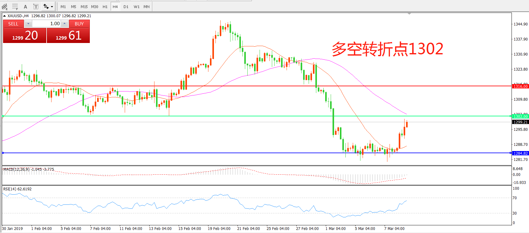 多空转折点:1302.00