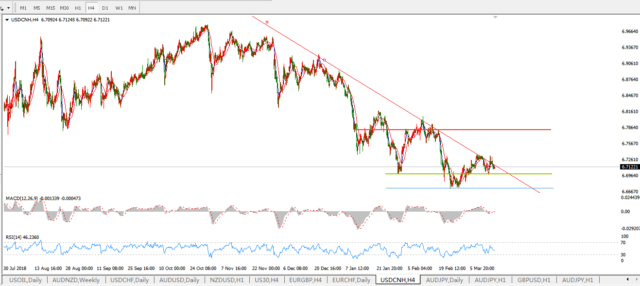 交易策略: 在6.6990之上,看涨,目标价位为6.7845,然后为6.8185。