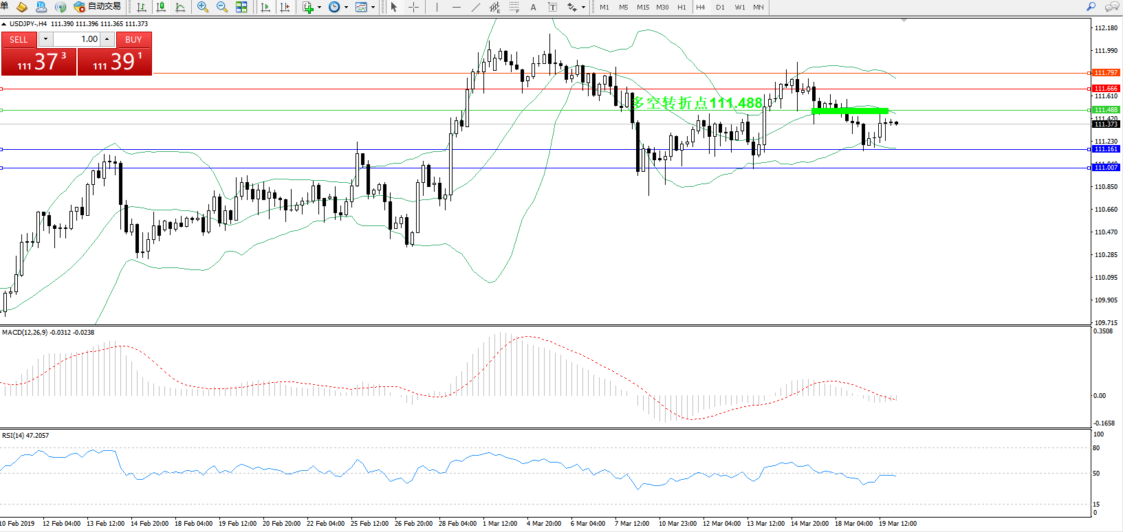 交易策略:111.488下方看跌,目标111.161、111.007