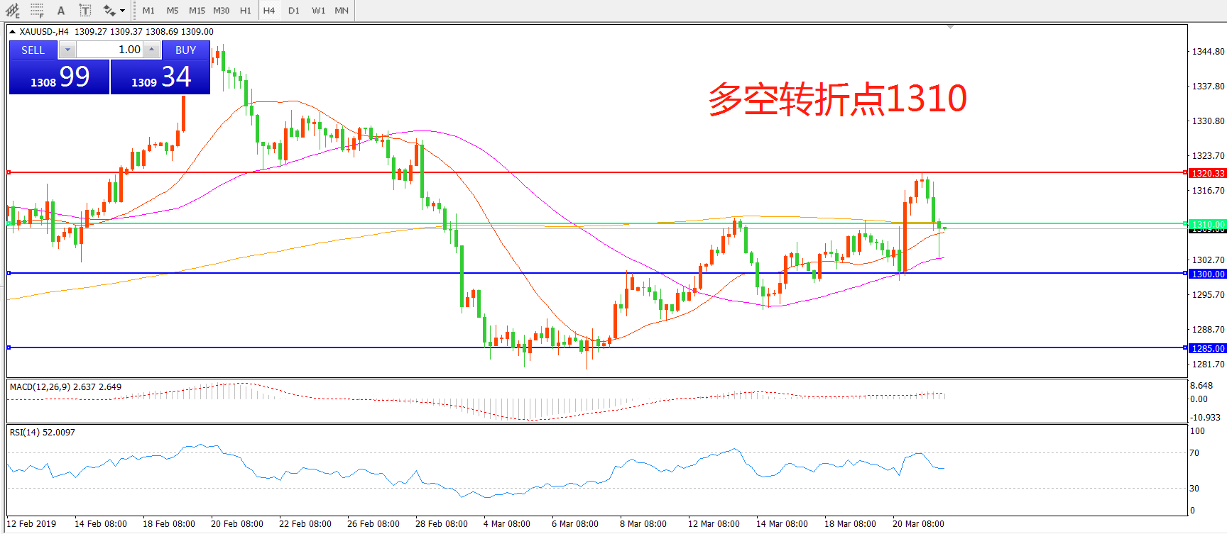多空转折点:1310.00