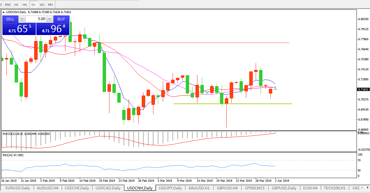 交易策略: 在6.6990之上,看涨,目标价位为6.7845,然后为6.8185。