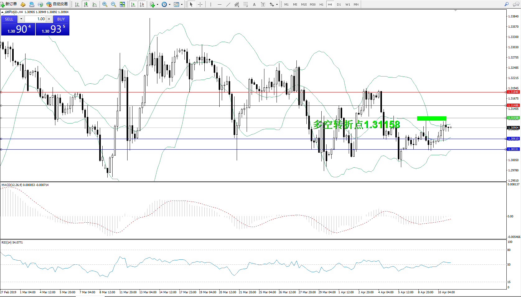 交易策略:1.31158下方看跌,目标1.30610、1.30331