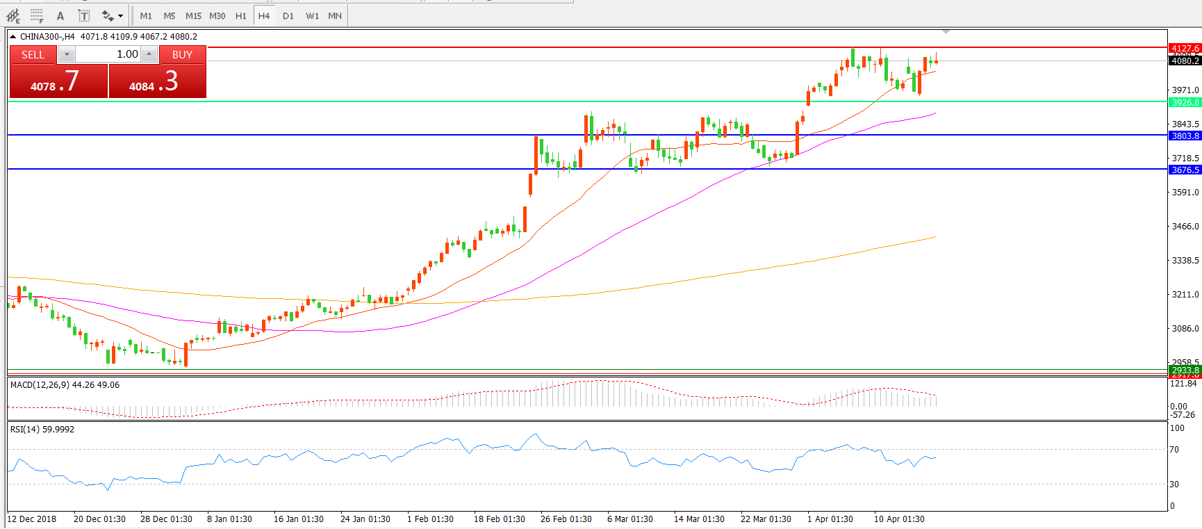 中华指数CHINA3004小时图