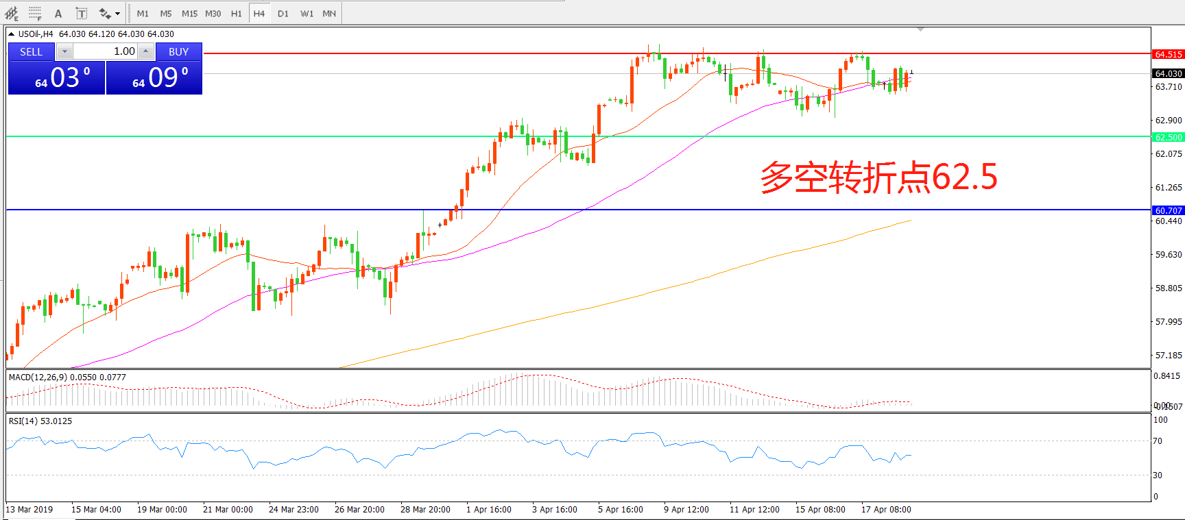 多空转折点:62.50