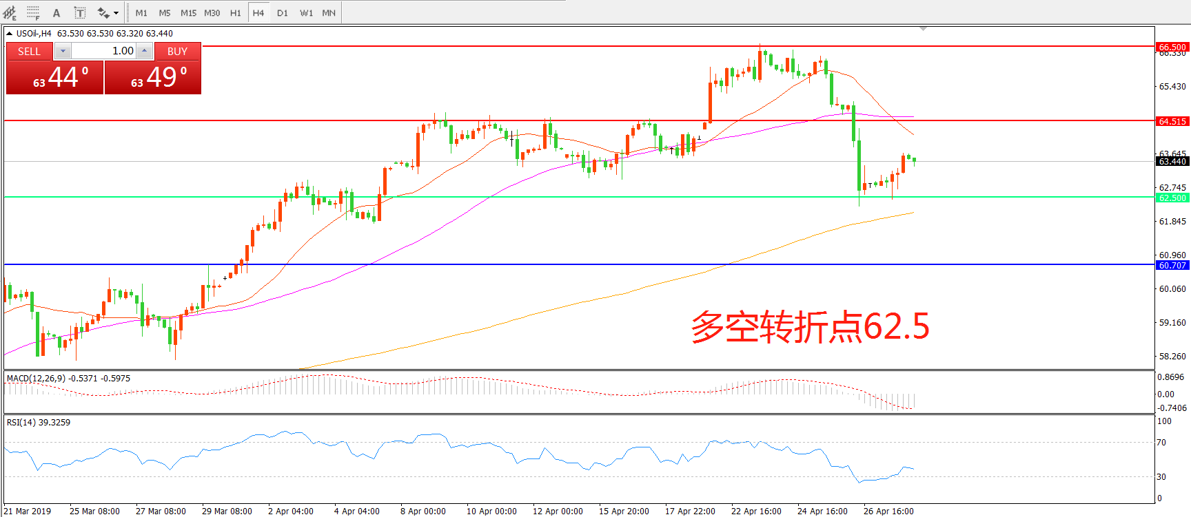 多空转折点:62.50