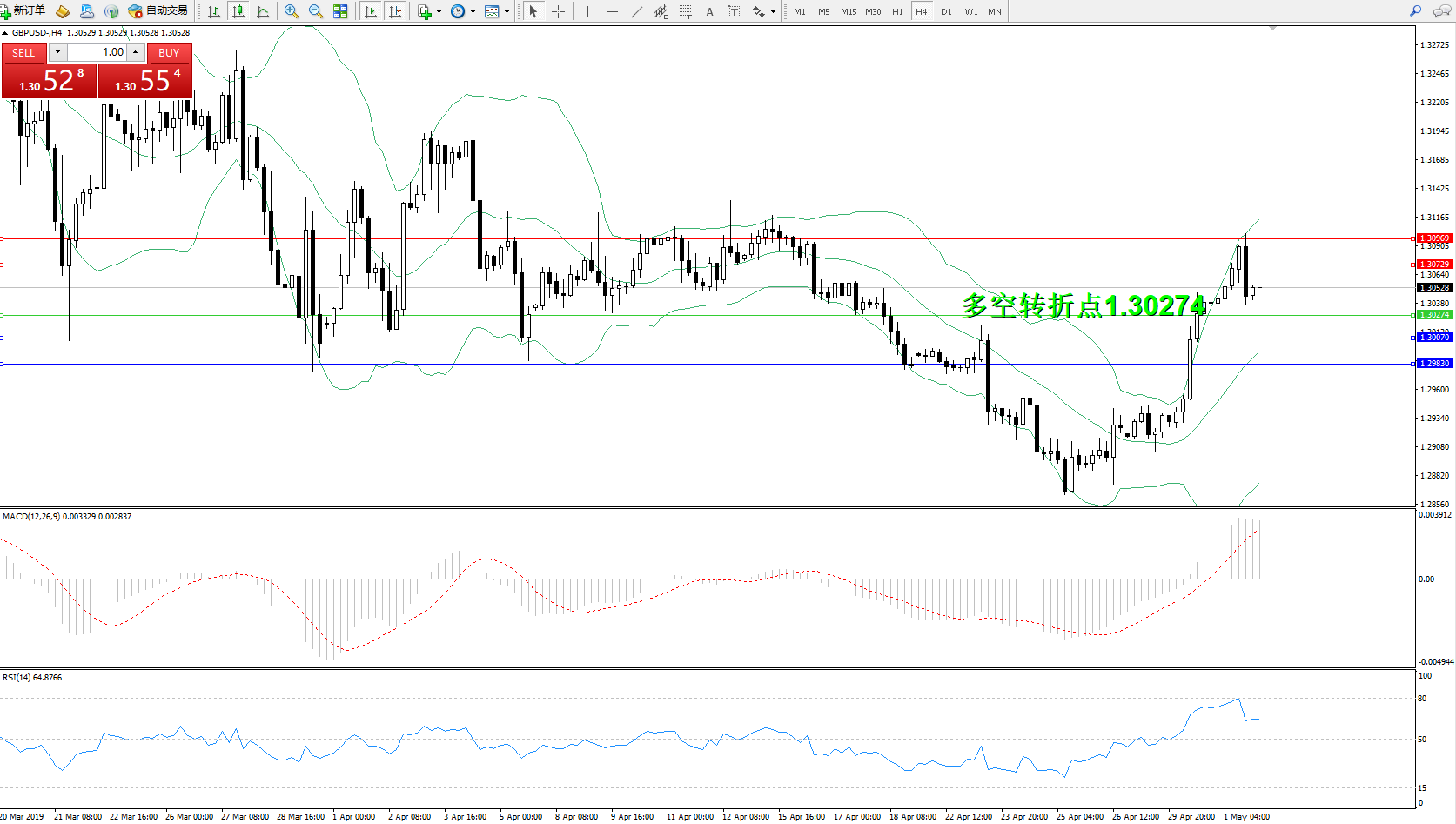 交易策略:1.30274上方看涨,目标1.30729、1.30969