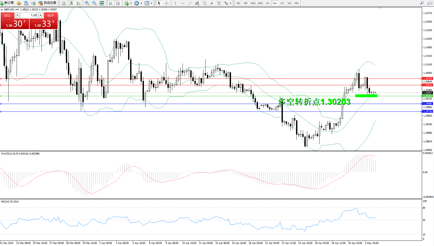 备选策略:1.30203下方看跌,目标1.29966、1.29730