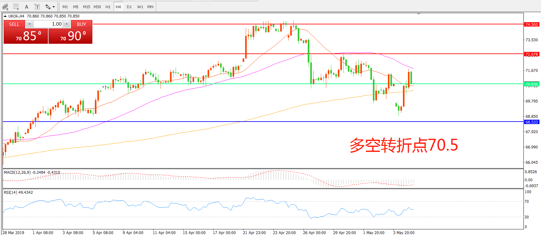多空转折点:70.50