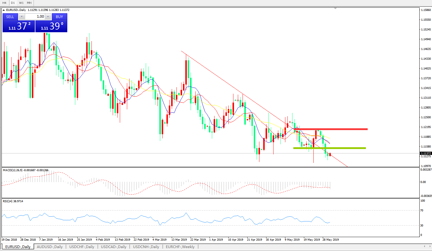 交易策略:在1.1150之下,看跌,目标价位为 1.1100,然后为1 .1030