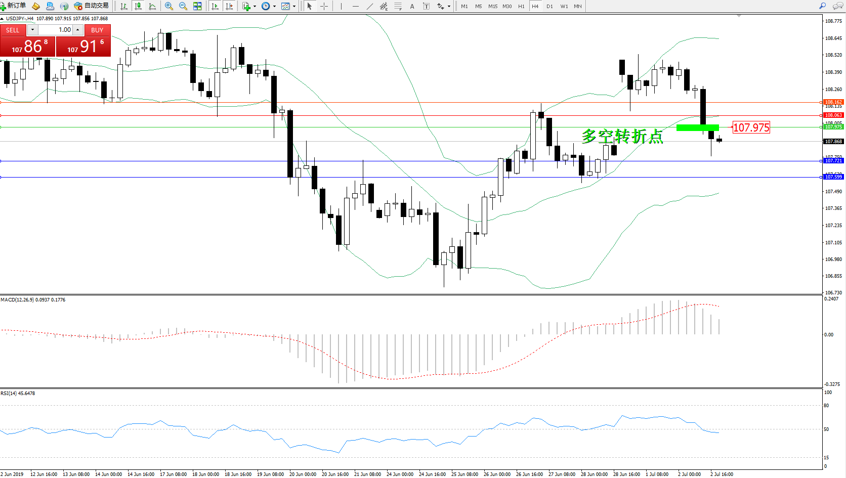 交易策略:107.975下方看跌,目标107.721107.599