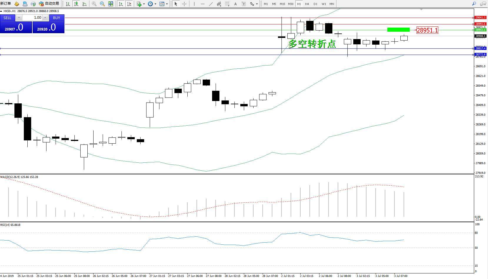 交易策略:28951下方看跌,目标28817、28772