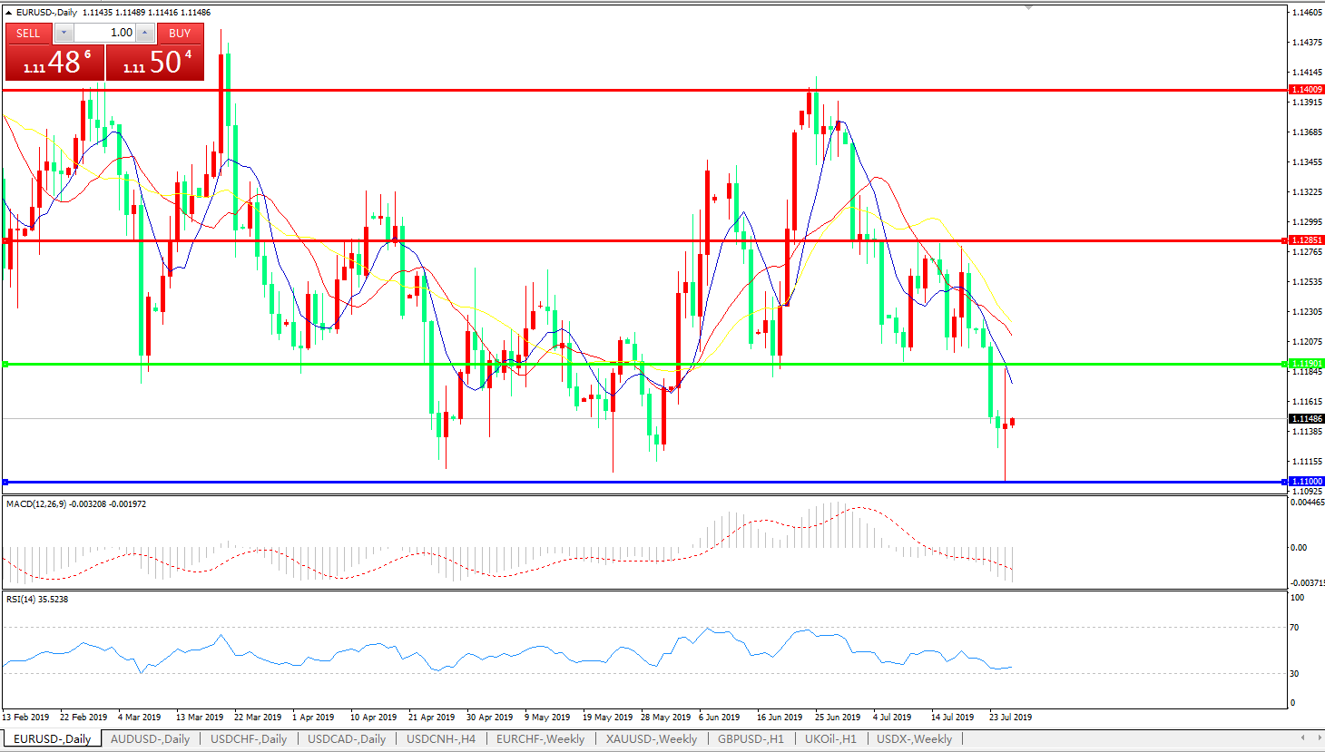 支撑位:1.1190、1.1110