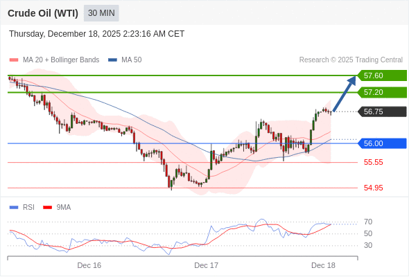 在 56.00 之上,看涨,目标价位为 57.20 ,然后为 57.60 。