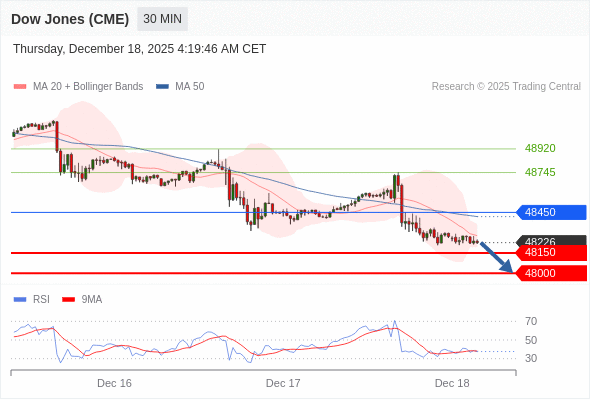 在 48450 之下,看跌,目标价位为 48150 ,然后为 48000 。