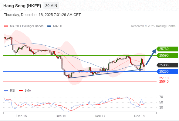 在 25250 之上,看涨,目标价位为 25590 ,然后为 25730 。