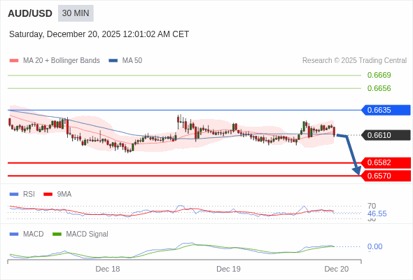 澳元/美元 当日内 : 看跌,当 0.6635 为阻力位。
