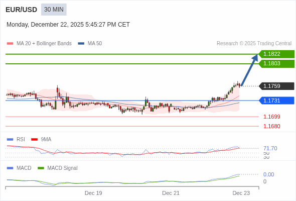 欧元/美元 当日内 : 看涨,当 1.1731 为支撑位。