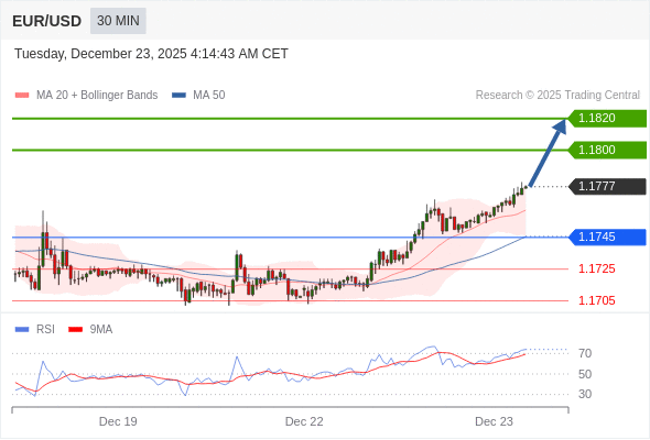 在 1.1745 之上,看涨,目标价位为 1.1800 ,然后为 1.1820 。