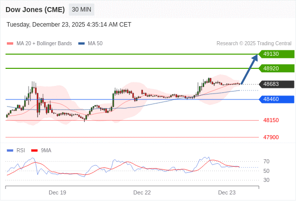 在 48460 之上,看涨,目标价位为 48920 ,然后为 49130 。