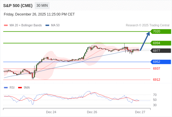 在 6952 之上,看涨,目标价位为 6994 ,然后为 7020 。