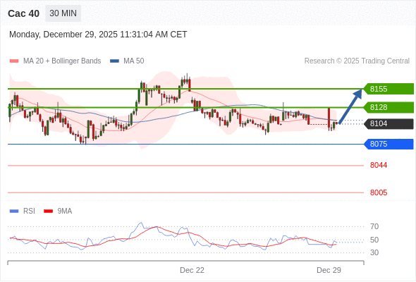 在 8075 之上,看涨,目标价位为 8128 ,然后为 8155 。