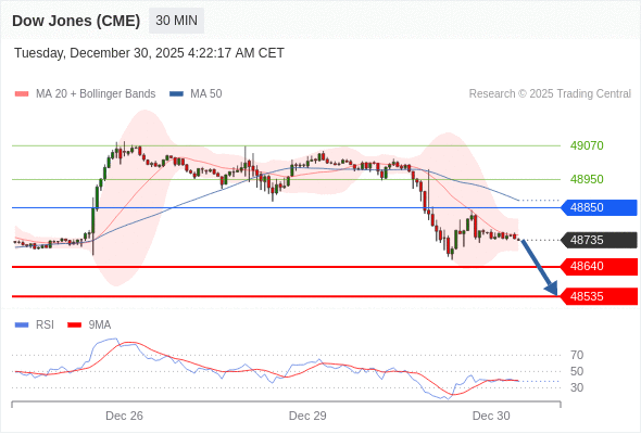 交易策略: 在 48850 之下,看跌,目标价位为 48640 ,然后为 48535 。