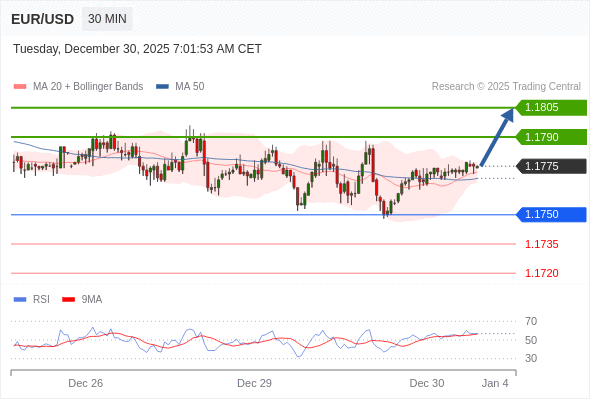 在 1.1750 之上,看涨,目标价位为 1.1790 ,然后为 1.1805 。