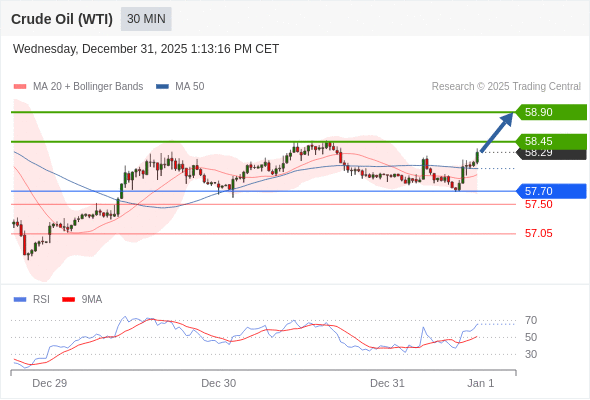 在 57.75 之上,看涨,目标价位为 58.45 ,然后为 58.90 。
