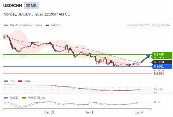 替代方案: 在6.9661以下,期待6.9612和6.9584。