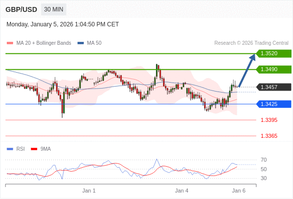 在 1.3425 之上,看涨,目标价位为 1.3490 ,然后为 1.3520 。