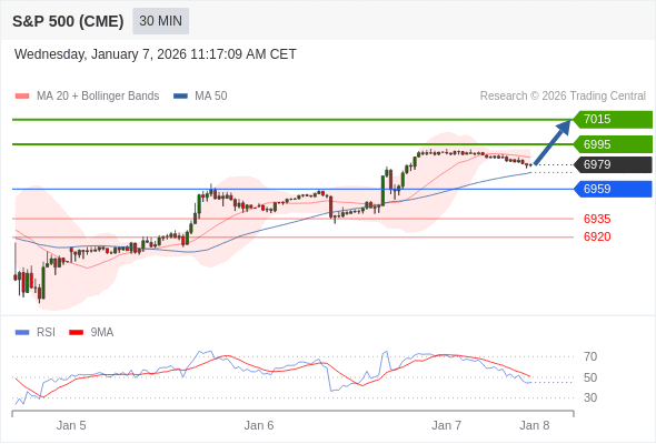 在 6959 之上,看涨,目标价位为 6995 ,然后为 7015 。