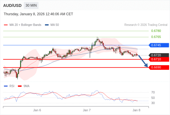 在 0.6745 之下,看跌,目标价位为 0.6710 ,然后为 0.6690 。
