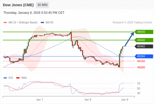 在 49260 之上,看涨,目标价位为 49640 ,然后为 49830 。