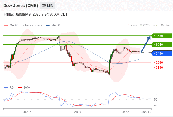 在 49450 之上,看涨,目标价位为 49640 ,然后为 49830 。
