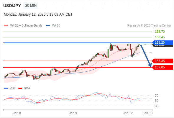 交易策略: 在 158.20 之下,看跌,目标价位为 157.35 ,然后为 157.05 。