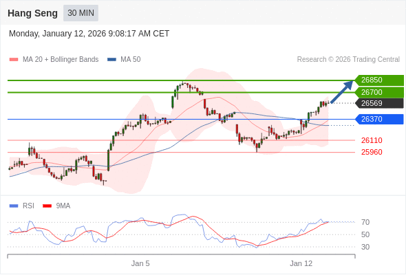 在 26370 之上,看涨,目标价位为 26700 ,然后为 26850 。