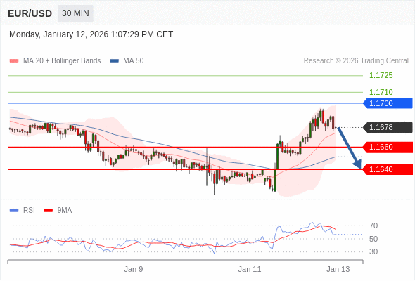 交易策略: 在 1.1700 之下,看跌,目标价位为 1.1660 ,然后为 1.1640 。