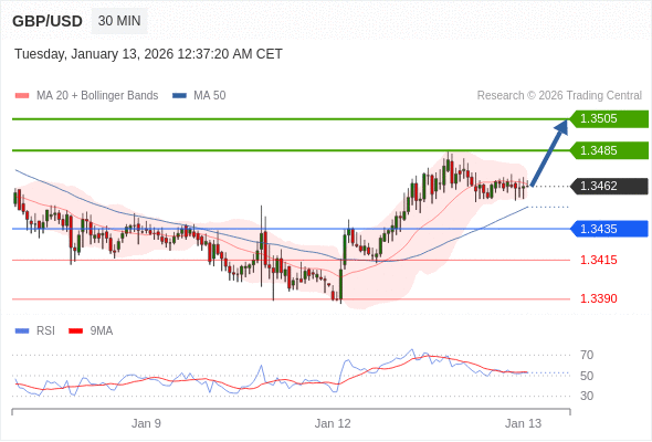 在 1.3435 之上,看涨,目标价位为 1.3485 ,然后为 1.3505 。