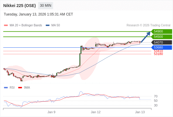 在 53680 之上,看涨,目标价位为 54500 ,然后为 54900 。