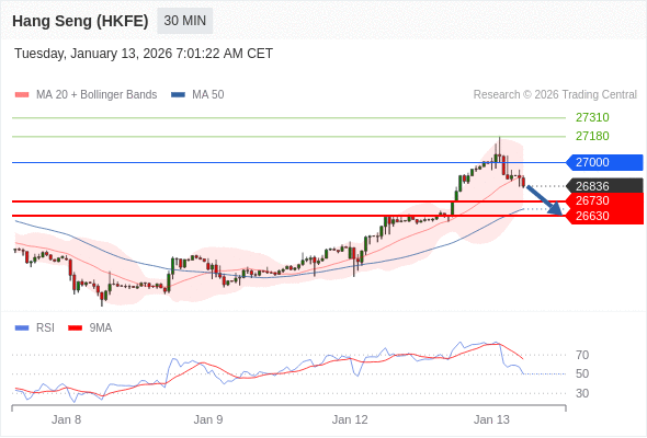 在 27000 之下,看跌,目标价位为 26730 ,然后为 26630 。