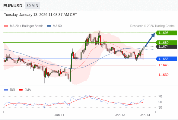 交易策略: 在 1.1680 之下,看跌,目标价位为 1.1655 ,然后为 1.1645 。