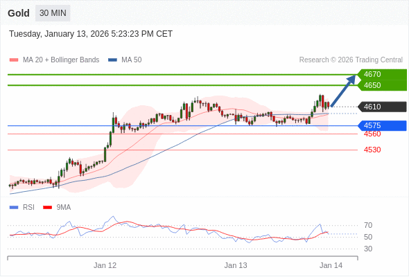 在 4575 之上,看涨,目标价位为 4650 ,然后为 4670 。