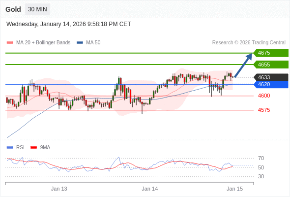 交易策略: 在 4620 之上,看涨,目标价位为 4655 ,然后为 4675 。