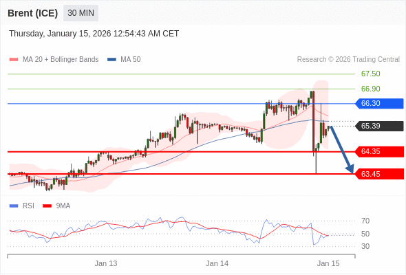 在 66.30 之下,看跌,目标价位为 64.35 ,然后为 63.45 。