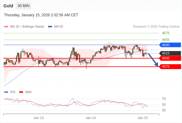 在 4640 之下,看跌,目标价位为 4600 ,然后为 4575 。
