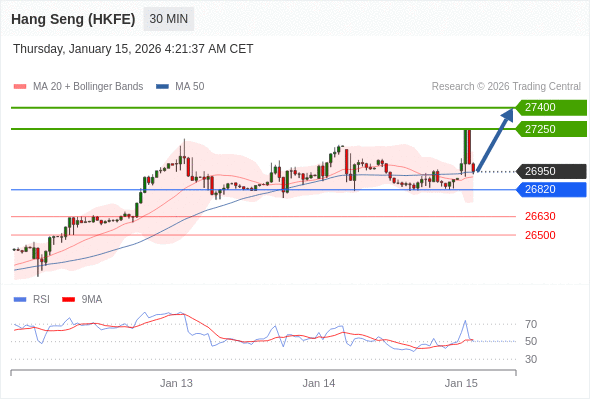 在 26820 之上,看涨,目标价位为 27250 ,然后为 27400 。