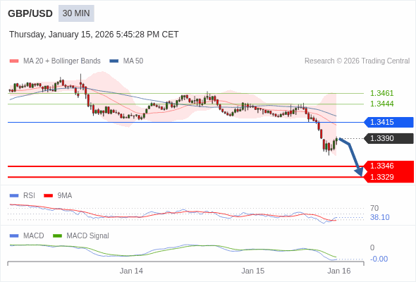 英镑/美元 当日内 : 看跌,在 1.3415 之下。