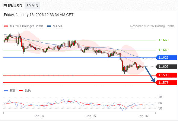 交易策略: 在 1.1625 之下,看跌,目标价位为 1.1590 ,然后为 1.1575 。
