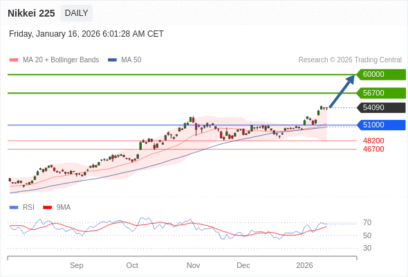 Nikkei 225 短线: 上升趋势。